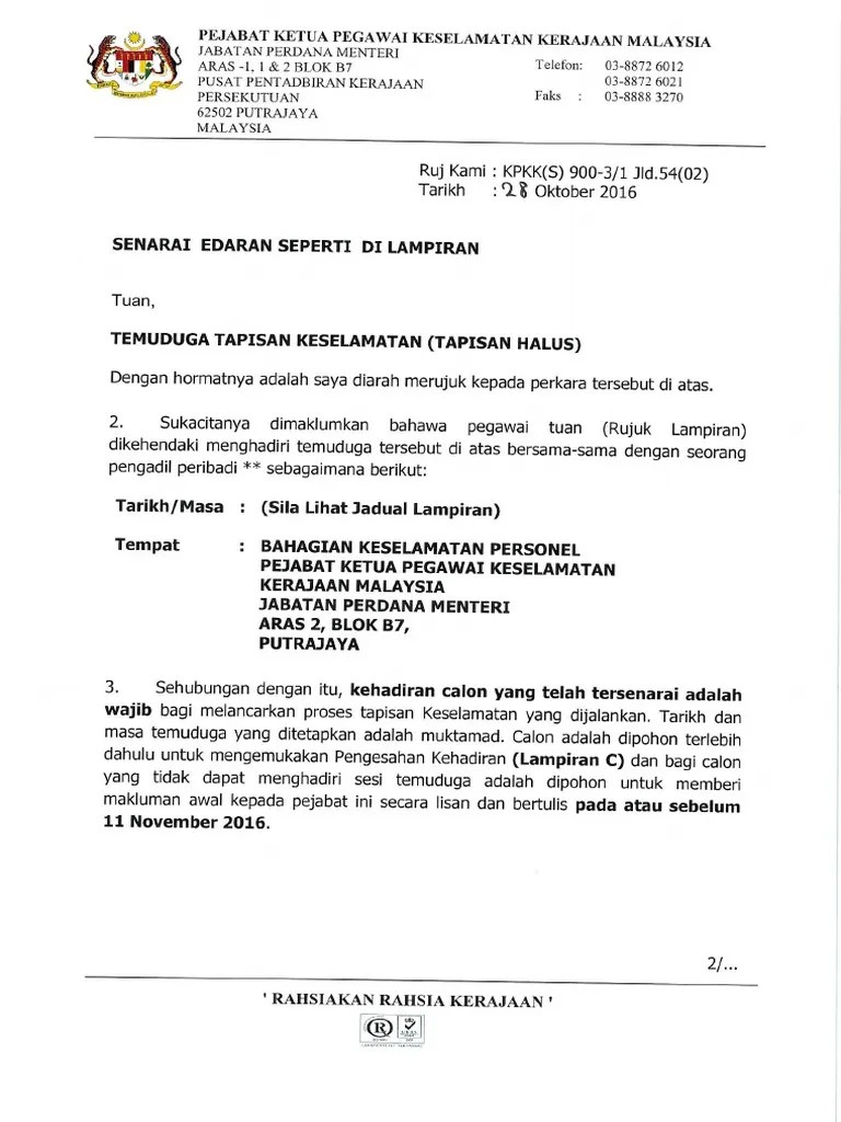 Surat Panggilan Temuduga Spa : Surat Panggilan Temuduga Halus Nov 2016 Pdf